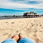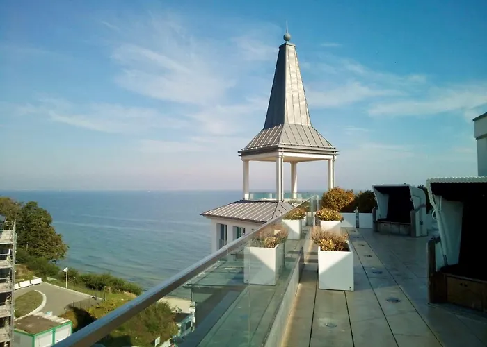 First Im First Sellin, Penthouse Paradies Am Meer appartement van 107 m^2 heeft een terras en ligt op 400 meter verwijderd van het Kurpark Friedensberg. Het strand 2-slaapkamerappartement ligt slechts een kort ritje van Seebrücke Sellin en biedt een zwembad.